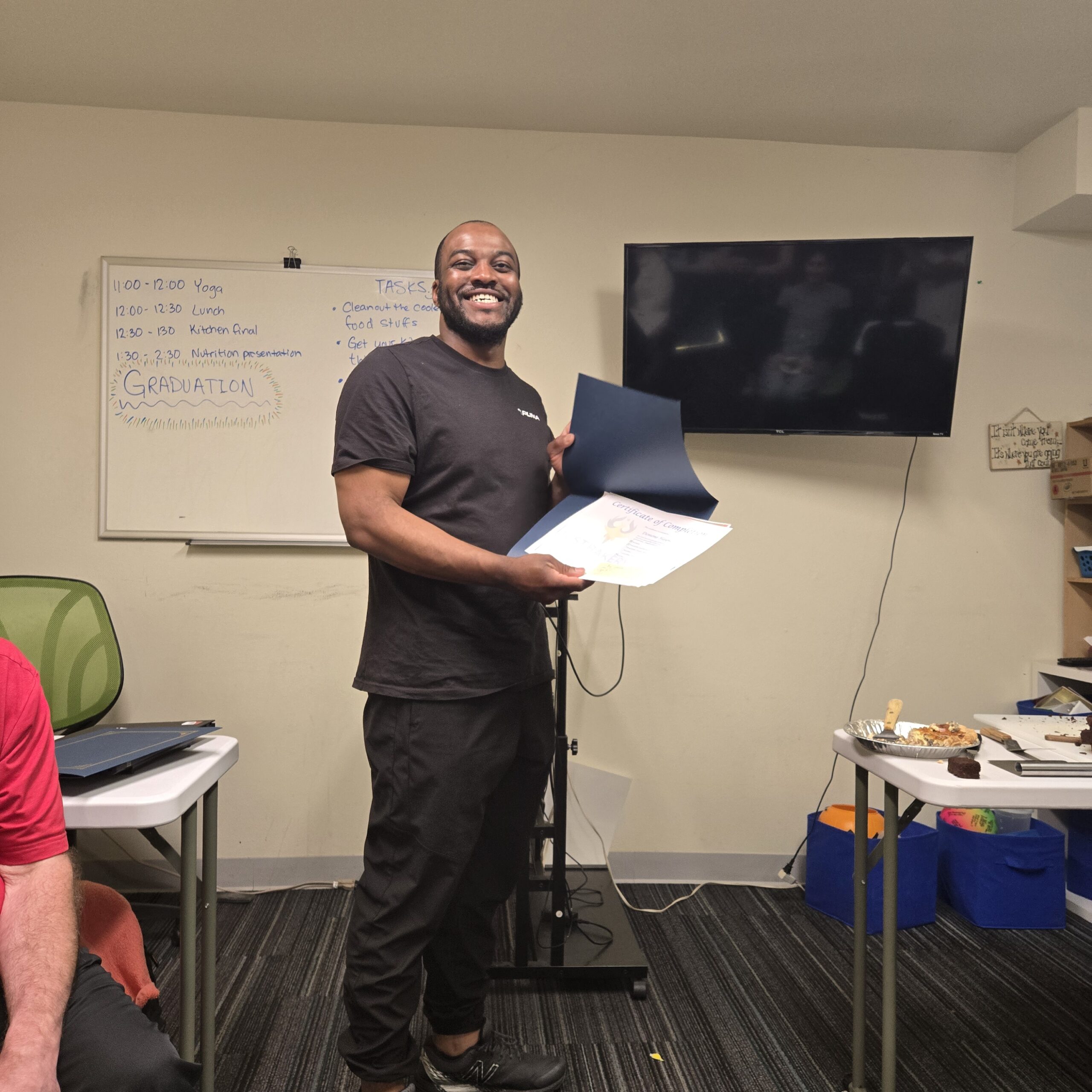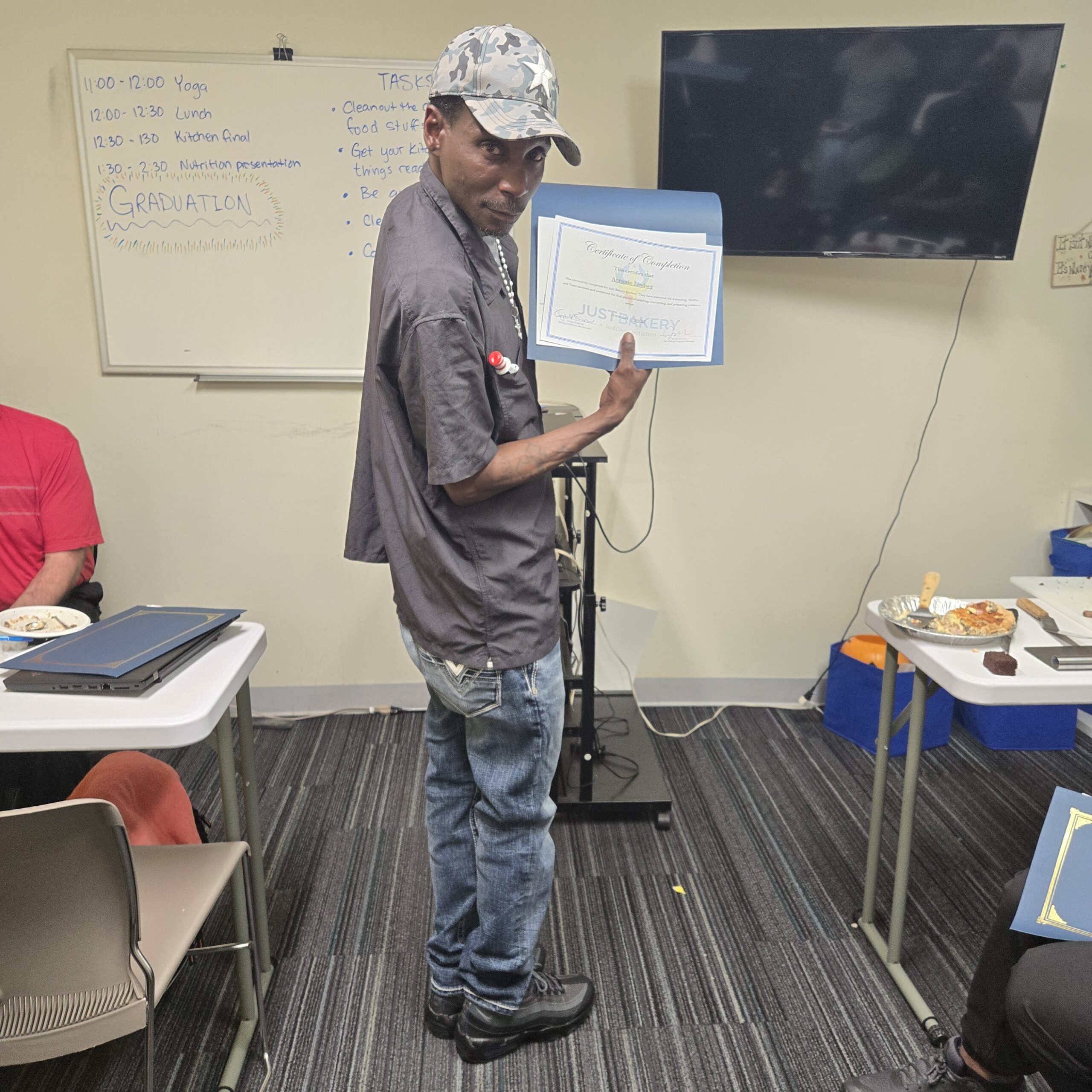 JB 70 has ended with 3 graduates and one of the largest-attended celebrations for their completion of the program. Friends, family, and peer support came in to show their love and appreciation for everyone who stuck through it. As an added bonus, attendees watched their support-ees (that’s a word today) give final presentations on subjects of their choice. Everyone present learned about GMOs, an overview of what “Nutrition” means as a science and how it’s applied in our daily lives, and the connection between mental health and digestive health.
