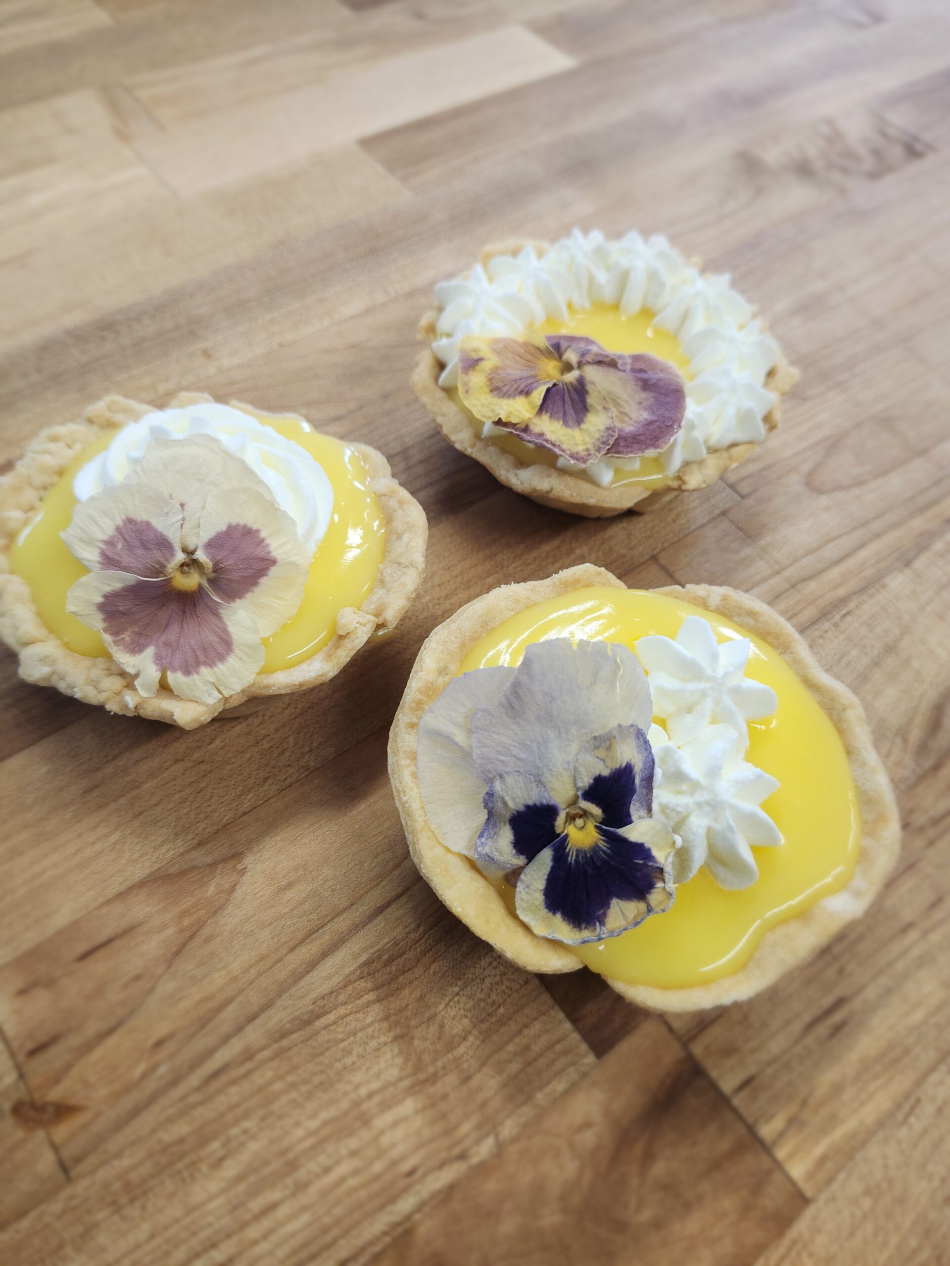Our special for Mothers Day this year! Show mom some love with our 5 inch tart with a creamy base topped with zesty, housemade lemon curd, a dollop of fresh whipped cream, and finished with an edible pansy. $10.00