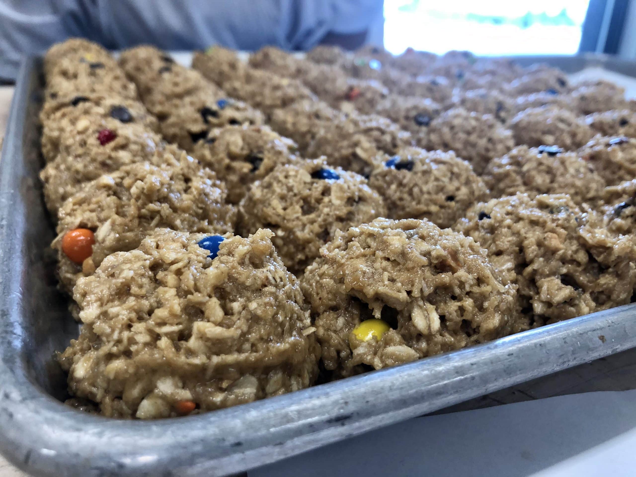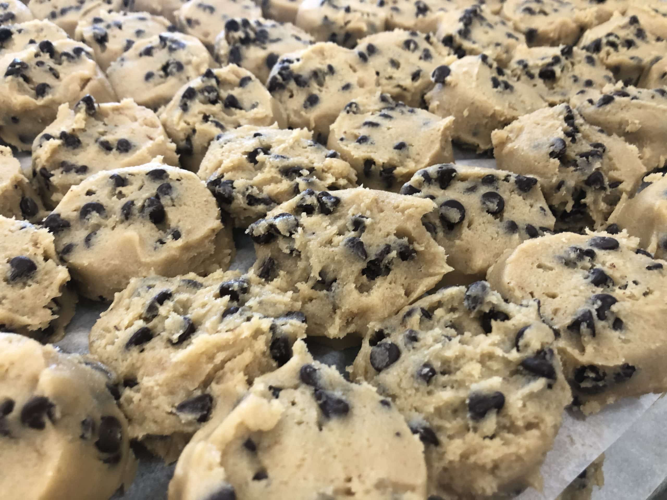 While we are learning new skills we continue to work on the creaming and muffin methods. We made batches of monster and chocolate chip cookie dough for pending orders and got cookies packed for pickup. We also were very glad to hear you liked our keto muffins, so we made more in a new flavor this week: classic chocolate chip!